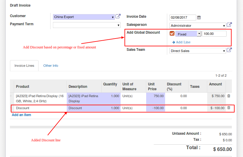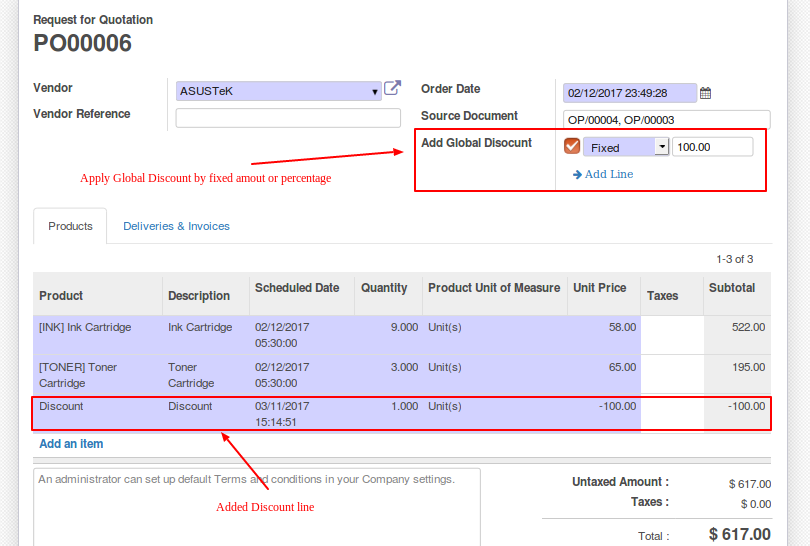 Sale, Purchase and Invoice Global Discounts.