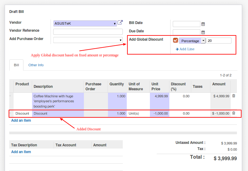 Sale, Purchase and Invoice Global Discounts.
